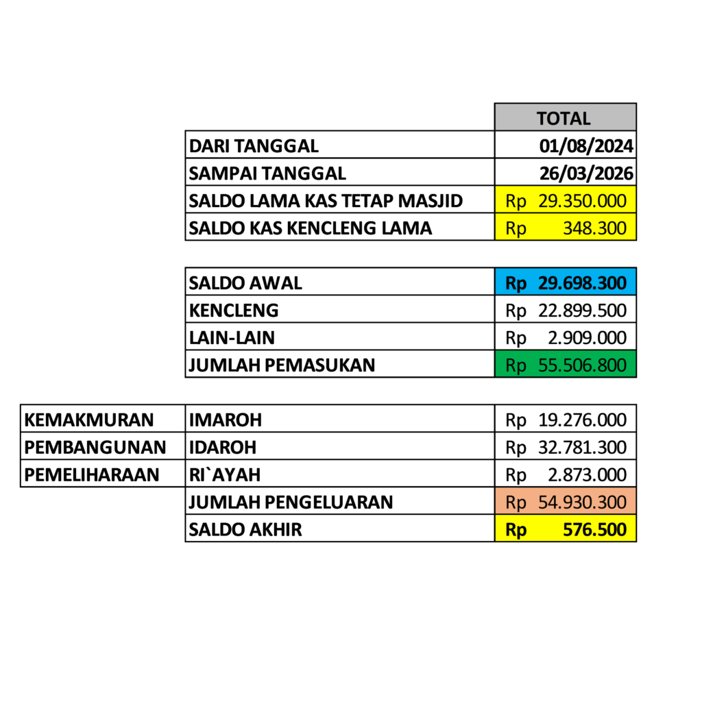 LAPORAN REKAF TOTAL KAS KENCLENG MASJID AL-FALAH GANDOL CICADAS